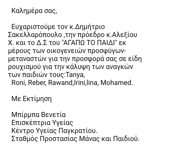 Σήμερα 15/11/2018, ο σύλλογός μας χάρισε στο ΓΝΑ "Αλεξάνδρα" φαρμακευτικά και είδη υγιεινής στα εγκαταλελειμμένα βρέφη.